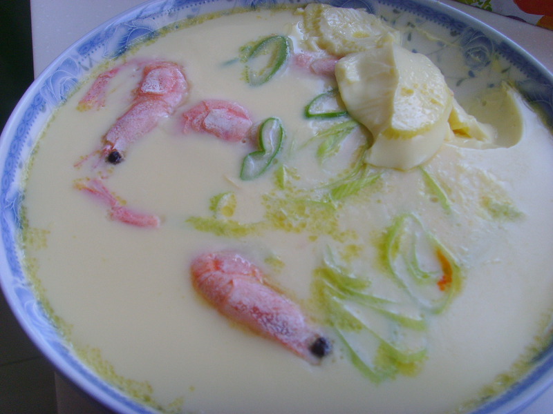 及以下步骤:三个鸡蛋打入容器中,搅拌开。 倒入容器开水,凉凉至不烫嘴温热的状态。 三个鸡蛋打入容器中,搅拌开。 倒入容器开水,凉凉至不烫嘴温热的状态。 三个鸡蛋打入容器中,搅拌开。 倒入容器开水,凉凉至不烫嘴温热的状态。 鸡蛋加入水、盐、味精、油、搅拌均匀。 放入虾、葱花。 盖上保鲜膜,放入锅中,开锅后蒸10分钟。(时间要考虑到鸡蛋的多少还有容器的厚薄) 十分钟后,出锅了,呵呵掀开保鲜膜的那一刹那,咸鲜味迎面扑来,嗯,味道一定很好,放入保温电饭锅里等老公回来咯...