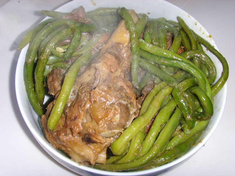 今天的晚餐,炖豆角。还有昨天吃剩下的骨头顺便也放锅里和豆角一起炖了一下,豆角的味道蛮不错的,骨头还是那么香呵呵,大家可以试试啊。