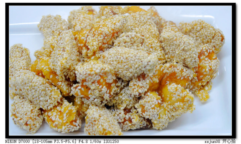 及以下步骤:基本南瓜丁内的水分炸没了,南瓜丁开始飘起来了 把炸好的南瓜丁捞出控油 锅内加入少许油、水和白糖开始熬制 第一步进行搅动熬制糖色 第二步糖色起大泡 第三部随着搅动跑越来越小,颜色也变的金黄色 第四步糖色泡泡越来越小,颜色也随之加深,水分随之没有了,可以准备小南瓜丁了 把炸好的南瓜丁下入熬好的糖色里进行快速翻炒 把锅离火,把挂满糖色的南瓜丁倒在烤好的芝麻上进行翻滚,使每一个南瓜丁都能滚匀芝麻 把滚芝麻的南瓜丁装盘食用