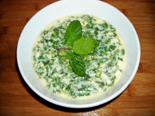 3、鸡蛋打散、加入一小碗纯净水加入薄荷拌均