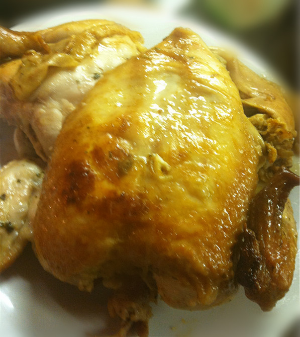 从小就很爱烤鸡....我很喜欢蘸着酱油醋吃....妈咪说我是个天生的懒鬼...吼吼吼.....在美食网看见苽苽的日志的菜谱...好心动哦....而且最重要的是材料很简单..哪里都可以找到!{因为在国外,有一些香料材料在这边很难找到,没有中国那么方便} 而且我还是初学者所以这次成功真的好happy哦! 这个烤鸡真的很简单,真的很适合初学者耶!~ 大部份的材料我都是按照原创做的,有一些我自己改造了点。