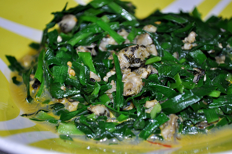 春天的韭菜最好了。蛤喇又很鲜美。两个配在一起吃,那叫一个美味啊。