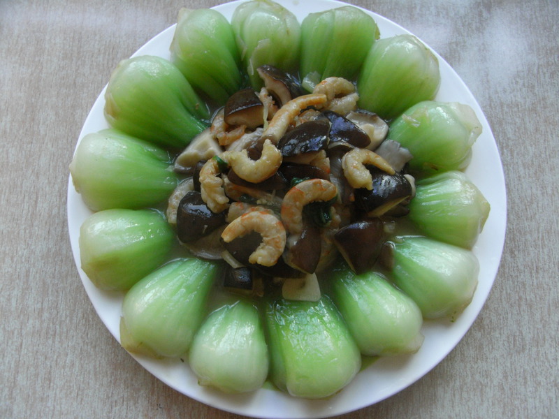 油菜心(八棵) / 鲜香菇(二两) / 水发海米(一两)