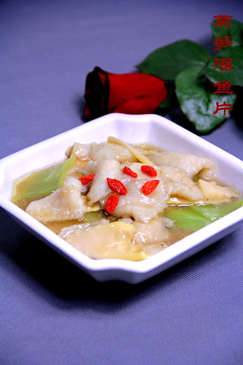 2、浆制好的鱼片可以用水滑或油滑均可,为了健康我常用水滑的方法制作,这样口感既嫩又少油,尤其适合老年人或高血脂的朋友食用。