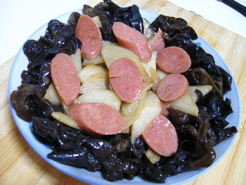 黑木耳(适量) / 山药(一段) / 火腿肠(一根)