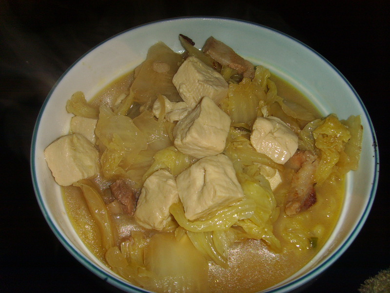 五花肉(少许借味) / 大白菜(随意) / 冻豆腐(大概一块的量)