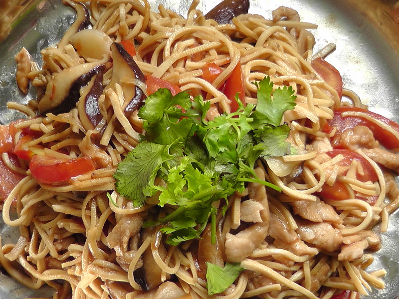 及以下步骤:配上一碗薏米粥,简单中餐。 豆腐丝切段,香菇切片,西红柿切片,蒜切片,肉切丝,香菜切碎备用。 肉丝放入料酒,淀粉,鱼露、生抽搅拌均匀,再倒入香油搅拌均匀,腌一会。 豆腐丝切段,香菇切片,西红柿切片,蒜切片,肉切丝,香菜切碎备用。 肉丝放入料酒,淀粉,鱼露、生抽搅拌均匀,再倒入香油搅拌均匀,腌一会。 平底锅倒入色拉油,爆香蒜,然后倒入肉丝炒到变色。 肉变白色后倒入香菇炒香然后再倒入豆腐丝炒香,这时倒点生抽。 最后倒入西红柿,炒到软就可以出锅了。 装盘撒入些香菜碎。 配上一碗薏米粥,简单中餐。