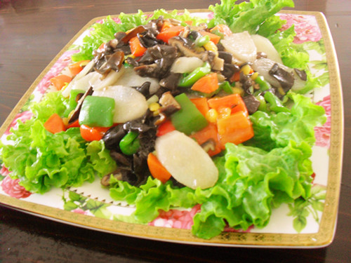 5、红黄绿白黑,五彩缤纷;色泽漂亮,口感脆嫩;清淡鲜香,营养丰富;乃素菜之精品也!