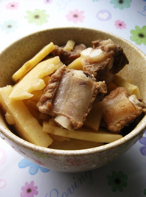 及以下步骤:热锅下油,倒入蒜和姜丝爆香。 倒入排骨翻炒。 一直把血水炒干,直到锅里都是油为止。 倒入竹笋翻炒均匀,加入适量的盐。 倒入适量的清水,没过排骨。 大火烧开后,转小火慢炖。 小火慢炖到汤汁收干,加入适量的鸡精,即可出锅~ 倒入适量的清水,没过排骨。 大火烧开后,转小火慢炖。 小火慢炖到汤汁收干,加入适量的鸡精,即可出锅~