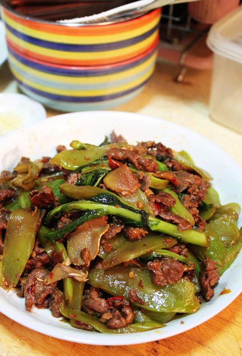 5、加入牛肉爆炒。