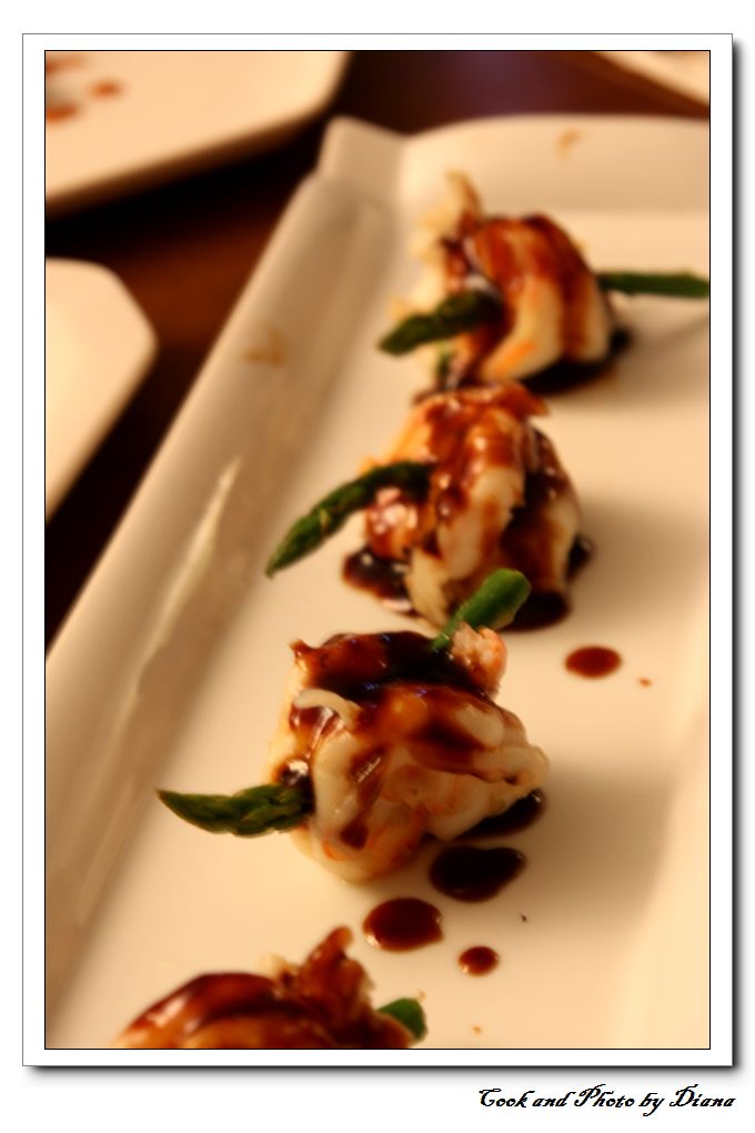 及以下步骤:用盐、黑胡椒粉、料酒腌片刻,与芦笋尖一起下到沸水锅里烫熟,捞出,剪掉虾尾,芦笋尖叉到虾卷中间,摆盘 大虾去头去皮留尾,开背,把虾尾穿到虾的前端盘起来 用盐、黑胡椒粉、料酒腌片刻,与芦笋尖一起下到沸水锅里烫熟,捞出,剪掉虾尾,芦笋尖叉到虾卷中间,摆盘 大虾去头去皮留尾,开背,把虾尾穿到虾的前端盘起来 用盐、黑胡椒粉、料酒腌片刻,与芦笋尖一起下到沸水锅里烫熟,捞出,剪掉虾尾,芦笋尖叉到虾卷中间,摆盘 大虾去头去皮留尾,开背,把虾尾穿到虾的前端盘起来 用盐、黑胡椒粉、料酒腌片刻,与芦笋尖一起下到沸水锅里烫熟,捞出,剪掉虾尾,芦笋尖叉到虾卷中间,摆盘 大虾去头去皮留尾,开背,把虾尾穿到虾的前端盘起来 用盐、黑胡椒粉、料酒腌片刻,与芦笋尖一起下到沸水锅里烫熟,捞出,剪掉虾尾,芦笋尖叉到虾卷中间,摆盘 豉油皇下小锅里烧开,用水淀粉收汁,用小勺子浇到摆好的虾上,即可