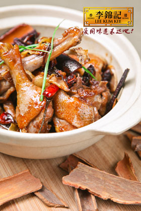 7、将老水鸭剁成件过油待用。将配料煸香,加鸭块一起煸炒30分钟。将调料放入煸好的鸭肉浸泡2小时入味。