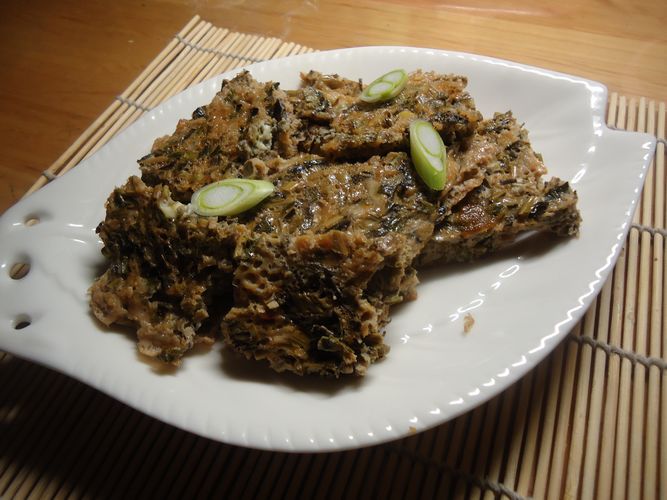 香椿炒蛋是大家都熟悉的菜了,我今天做的稍微有点不同,此菜来源于《川味名菜》一书,是从一位朋友那里借来的,这是一本很古老的书,里面记录了在成都的一位名厨所作的菜肴,距今也有四、五十年了,当时还没有燃气,所用的都是碳火,烘椿芽蛋时,是将火上薄薄的盖一层碳末,不燃明火,将椿芽蛋烘熟;我生搬硬套了一下,只是在烘烤时不停的转动锅,以免烤糊,样子不太好看,味道还可以了。 春天也是吃香椿的季节,烘烤过的香椿色泽金黄、皮酥里嫩,咸鲜味美呢~