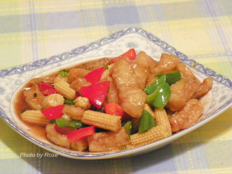 青菜椒(1/2只) / 红菜椒(1/2只) / 生抽-碗汁(1汤匙) / 糖-碗汁(1/2茶匙) / 麻油-碗汁(适量) / 罐头玉米芯(适量) / 蒜头-碗汁(3-4粒) / 姜-碗汁(适量) / 葱-碗汁(1根) / 镇江醋-碗汁(2汤匙) / 盐-碗汁(1/2茶匙) / 胡椒粉-腌鱼(1/4茶匙) / 高度酒-腌鱼(1茶匙) / 盐-腌鱼(1/2茶匙) / 糖-腌鱼(1/6茶匙) / 茄汁-碗汁(1汤匙) / 水或高汤-碗汁(1/2饭碗)