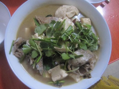 料酒(适量) / 盐(适量) / 油(适量) / 酱油(适量) / 白糖(适量) / 豆腐(1块) / 醋(适量) / 香菜(适量) / 八角(适量) / 葱姜蒜(适量) / 香叶(适量) / 花椒粉(适量)
