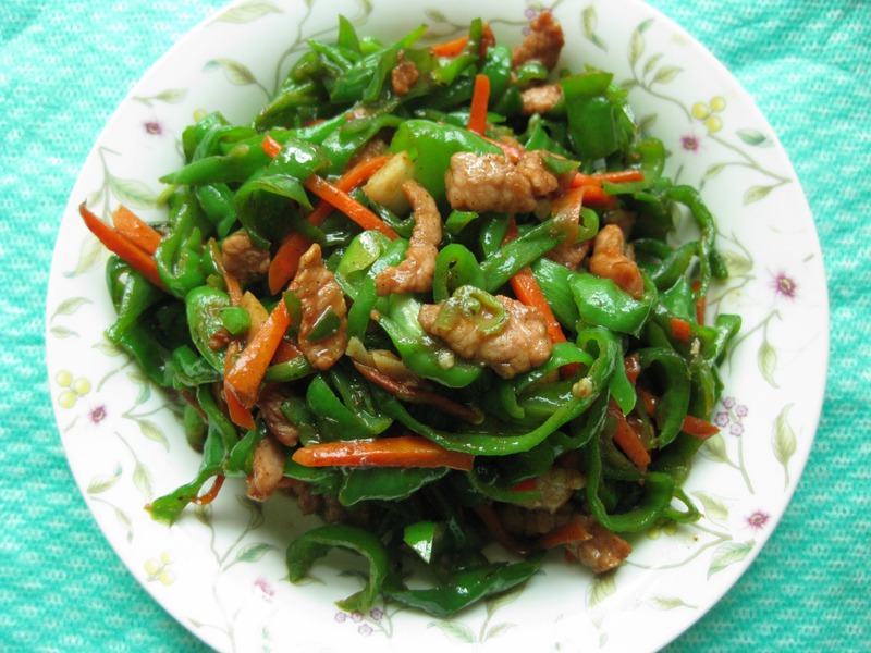 及以下步骤:将肉切丝,用酱油,淀粉,一勺油抓匀后腌制一会 青椒和胡萝卜也切丝 将肉切丝,用酱油,淀粉,一勺油抓匀后腌制一会 青椒和胡萝卜也切丝 将肉切丝,用酱油,淀粉,一勺油抓匀后腌制一会 青椒和胡萝卜也切丝 锅热后放油,6成热时倒入肉丝快速煸炒 上色后盛出 在锅内倒入胡萝卜丝,接着倒入青椒丝 煸炒一会后,倒入肉丝,加入调料(盐,鸡精)翻炒均匀后就可出锅了