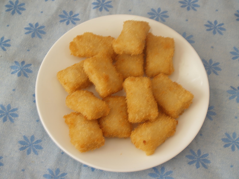 外观光滑,鲜亮,没有鳞片,肉和浆粉的黏结好,不脱壳,腌制的产品上浆后进行油炸,酥脆多汁的口感;如果和面包屑一起使用,会有不同凡响的口感和外观;您可以轻松的作出许多美味,如:黄金鸡柳、鸡柳、五香金甲鸡柳、鸡柳(孜然麻辣)、圣诞鸡柳、圣诞羊柳、鸭方、鸡米花、胡椒肉串/番茄肉串、牙签肉、五香炸猪排、小胸派等