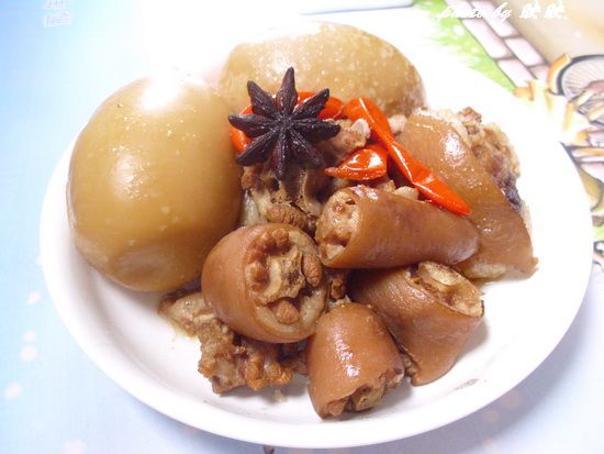 看到有猪尾巴的时候就买了一条,觉得还是卤着吃好,于是就开始卤了,还加了鹅蛋,真不错哦!