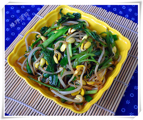 及以下步骤:翻炒均匀即可。 看看成品吧 萝卜蘸酱一起上桌 将萝卜缨切段,韭菜也切段。 姜末炝锅,放少许生抽,放入黄豆芽炒制。 等黄豆芽炒熟炒透放入萝卜缨盐味精一起煸炒。 最后放入韭菜,盐味精。 翻炒均匀即可。 看看成品吧 萝卜蘸酱一起上桌
