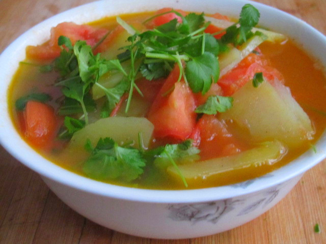 番茄做汤很好喝,酸溜溜的。今天又想喝点汤了,这几天没去买菜,只有番茄,还有些土豆,一起炖了。喝惯了番茄鸡蛋汤,就改变一下,尝尝这款汤吧