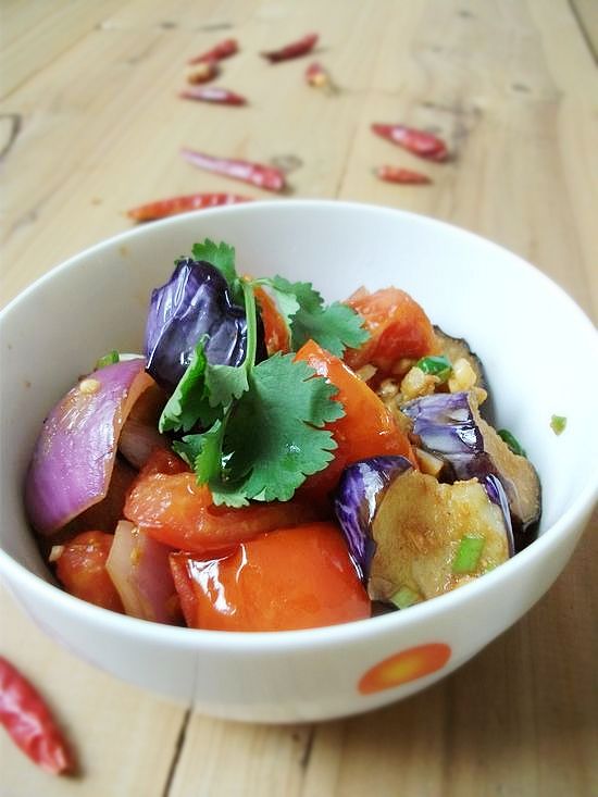 在我的印象中,对家乡菜记忆最深刻的莫过于茄子了。记得小时候,每年家里种的最多的就是茄子和豆角,天天轮着吃也吃不腻。最喜欢的一种吃法是把茄子先蒸成茄泥,然后加蒜蓉干红椒去炒,那个味道,于我,已经是世上最美味的菜肴了。吃不完的茄子就蒸熟然后晒干成茄干,烧肉的时候放上一把,那味道绝了! 而番茄,在那时候对我来说,还是个奢侈品,因为自家没种过,每次去赶集,看着那红彤彤的番茄,就忍不住流口水,非得磨着妈妈买几个回家,切成片片,用白糖一拌,腌上一会,当然,肯定是腌不了多久的,几个馋娃眼巴巴的盯着,不等入味,已经被轰抢一空。番茄于那时候的我们,还只是一种解馋的水果。 如今的我们,长大了,茄子番茄也随处可见,想吃就吃。可味道,却永远没有童年那时候的感觉了。可能,我想念的,只是童年本身,跟茄子或番茄并没有多大关系。 虽然这样,还是会久不久的买些茄子和番茄来烩,一道菜,满足两种思念! 紫茄中含有龙葵碱,能抑制消化系统肿瘤的增殖,对于防治胃癌有一定效果。此外,茄子还有清退癌热的作用。茄子还含磷、钙、钾等微量元素和胆碱、胡芦巴碱、水苏碱、龙葵碱等多种生物碱。尤其是紫色茄子中维生素含量更高。 茄子含有维生素e,有防止出血和抗衰老功能,常吃茄子,可使血液中胆固醇水平不致增高,对延缓人体衰老具有积极的意义。 番茄作为一种蔬菜,已被科学家证明含有多种维生素和营养成分,如番茄含有丰富的维生素c和a以及叶酸、钾这些主要的营养元素。特别是它所含的茄红素,对人体的健康更有益处,而一些水果如西瓜、柚、杏只含有少量的茄红素。当然,人们称番茄为爱情果,还因为此果真有如爱情一般的功效,可以让女孩子们更加美丽呢!