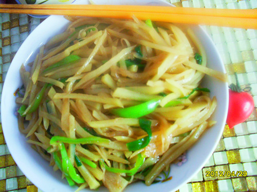 经由过程中华厨具网网友为您分享辣炒土豆丝的做法,您是不是已学会辣炒土豆丝烧制步调和所需时候,调料搭配?经由过程我们的手把手教会您怎样做辣炒土豆丝,您肯可以将辣炒土豆丝做的即营养又好吃,赶快步履吧,为您和家人烹调一份甘旨可口的好菜吧。等候您为辣炒土豆丝菜谱分享烧制功效。