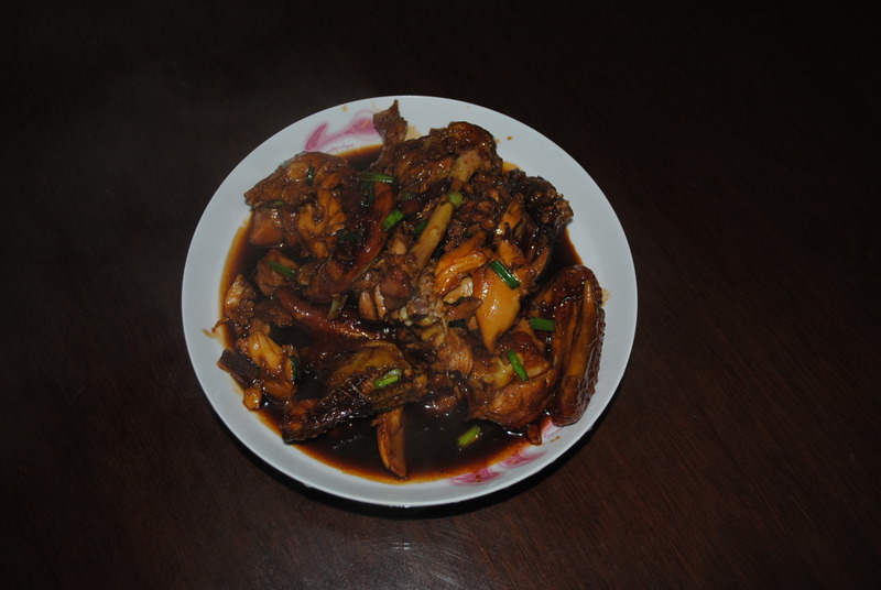 及以下步骤:蒜头出味后,倒光鸡下去,翻炒 翻炒中。。。 加酱油(最好用生晒的),上色。改小火(用炉头最小的火)。慢慢煮,,,煮的过程中不要加水之类的,反正就是用小火。 就是用这样的小火 煮大约10分钟(过程要翻边)左右,再倒下片糖碎,看图片。 一边倒一边翻,一边翻一边倒。哈哈,有点囉嗦。。。 倒完糖后,再煮个10秒就ok了。就可以上碟,上碟前最好加点葱花吧,,,会更加好味点。 成品。请大家品尝。。。。真心的,,, 倒完糖后,再煮个10秒就ok了。就可以上碟,上碟前最好加点葱花吧,,,会更加好味点。 成品。请大家品尝。。。。真心的,,,