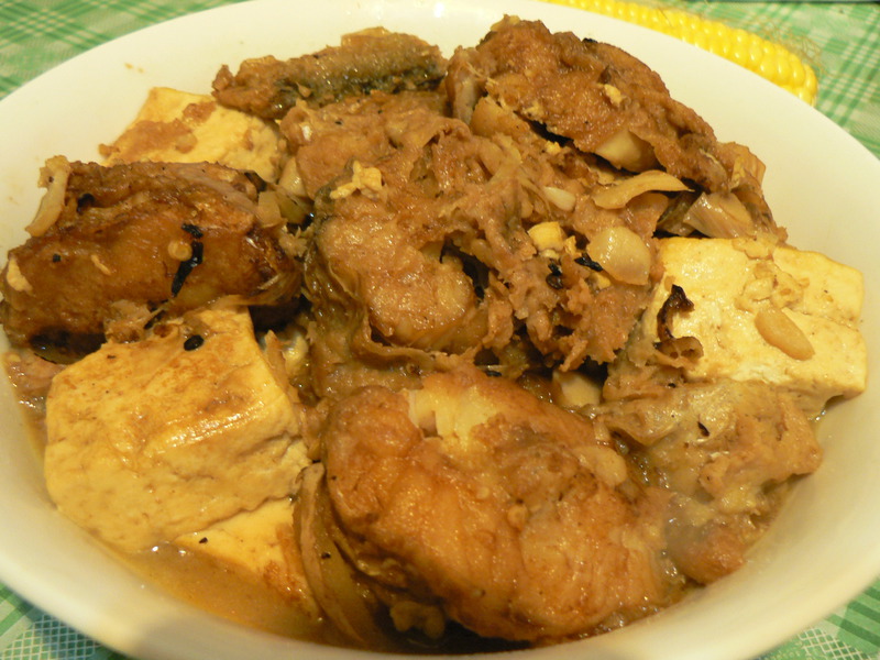 及以下步骤:把无头鱼块全部放入鸡蛋糊中,让糊汁把鱼裹沾均匀。 炒锅加油,热锅热油待用。 待油滚沸,下入无头鱼块炸制。 将鱼块炸到金黄,捞出装盘。 热锅另起油,用葱、姜、蒜、干红椒炝锅。 将鱼块下入炒锅,烹入酱油、醋、老抽、料酒和白糖。 加入少半量水,加入适量的盐,大火煨鱼块。 将切好的豆腐块倒入锅内。 豆腐和鱼块一起炖烧十分钟。 出锅装盘,呵!香味扑鼻啊。