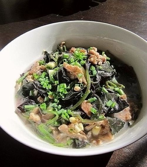 及以下步骤:再注入适量开水煮沸。 调入少许盐、胡椒粉、鸡精、芝麻油煮成上汤。 然后将上汤倒入盛紫背菜的大碗里即可食用。 大火煮至软,放入少许盐。 捞起盛入大碗里待用。 烧热锅倒入适量橄榄油放入姜蒜。 倒入腌好的肉丝大火炒片刻。 再注入适量开水煮沸。 调入少许盐、胡椒粉、鸡精、芝麻油煮成上汤。 然后将上汤倒入盛紫背菜的大碗里即可食用。
