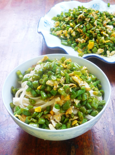 葱花(适量) / 鸡蛋(适量) / 豆角(适量) / 面条(适量)