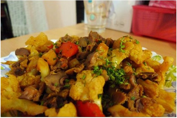 红甜椒(1/2个) / 菜花(300g) / 鸡胗(200g)