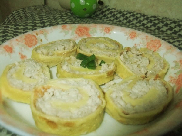 及以下步骤:卷成长条,上锅蒸8分钟至肉熟透 待鸡蛋卷晾凉切片即可食用 今天的蛋卷用的是鸡蛋跟瘦肉 猪瘦肉洗净剁成泥 加入适量的淀粉、盐、香油、料酒、生抽搅拌均匀 鸡蛋打散加入适量的淀粉、面粉搅拌均匀 平底锅抹油倒入鸡蛋液摊成薄皮 鸡蛋皮置于平盘中,上铺上肉泥 卷成长条,上锅蒸8分钟至肉熟透 待鸡蛋卷晾凉切片即可食用