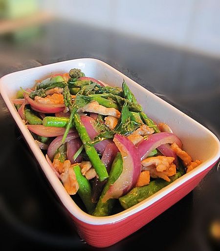 洋葱(适量) / 芦笋(适量) / 鸡肉(适量)