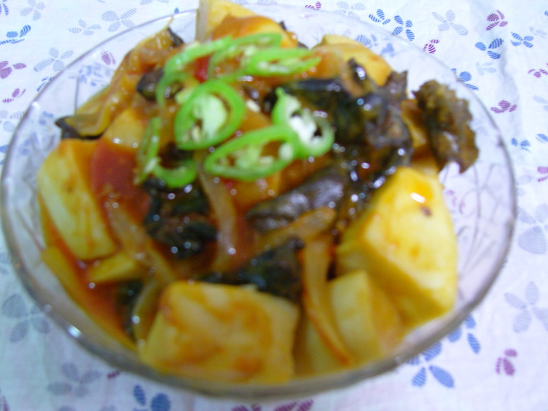 及以下步骤:热锅,下黄油,油化后滋滋响时下洋葱,炒香,下木耳,快速翻炒 加入杏鲍菇块,番茄红烩料,翻炒匀 加入椰奶 盖上锅盖,焖一下,(我就手抄起旁边铁锅的盖子,汗,懒人啊) 开盖,加一些胡椒粉,收汤,汤别收太干 装碗,(照片太次了) 浇上汤汁,装饰一下 图拍的不好,口味是很好很好的 酸甜可口 酸甜可口