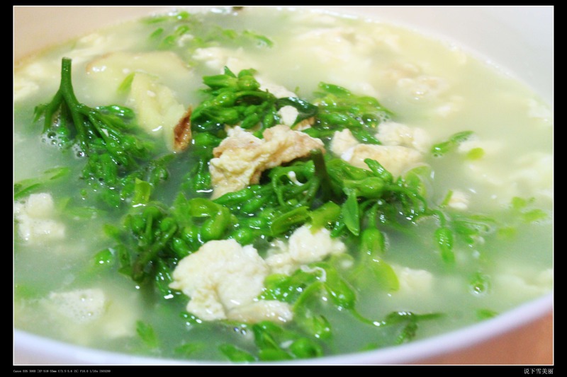 及以下步骤:来一碗吧,好爽口啊,清爽。 千里香洗净,都是花蕾,口感好着呢,姜切末,鸡蛋打液。 热油锅,把鸡蛋加些水打液打到起泡最好咯。下锅,爆炒一下。 千里香洗净,都是花蕾,口感好着呢,姜切末,鸡蛋打液。 热油锅,把鸡蛋加些水打液打到起泡最好咯。下锅,爆炒一下。 未全凝固时,搅乱只可,这样我感觉比较嫩,不用煎至黄色。不过,要你喜欢也行,哈哈 加入姜末,加入适量的水煮。 煮开以后加入千里香,加入少许的白酒。 再次煮开,煮一下下就可以了,很容易熟的,加入适量盐即可。 来一碗吧,好爽口啊,清爽。