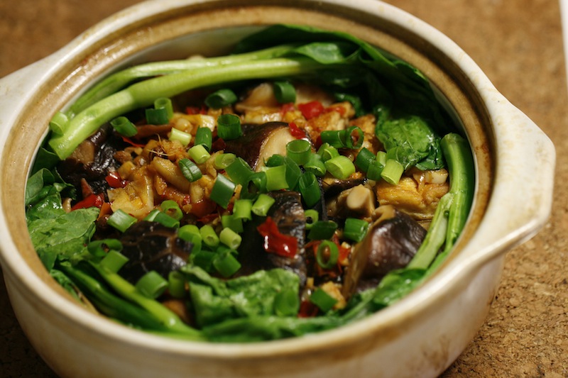 豆腐要选老一点的北豆腐,说是煲,实际没什么汤,汁被收的差不多了。这道菜虽为素菜,因为料足,加上香菇和豆腐都很能吸味,吃起来一点不觉得素,味道非常厚实丰富,微辣咸香。煎过的豆腐经过的炖煮,饱含汤汁,咬一口皮焦韧、心软嫩,下饭,解馋,健康,安心。