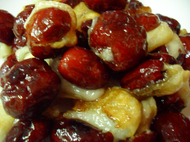 去枣核是个精细活,需要耐心,炸时先大火是防止枣子相互粘住,改小火让冰糖慢慢融化入味到糯米团里