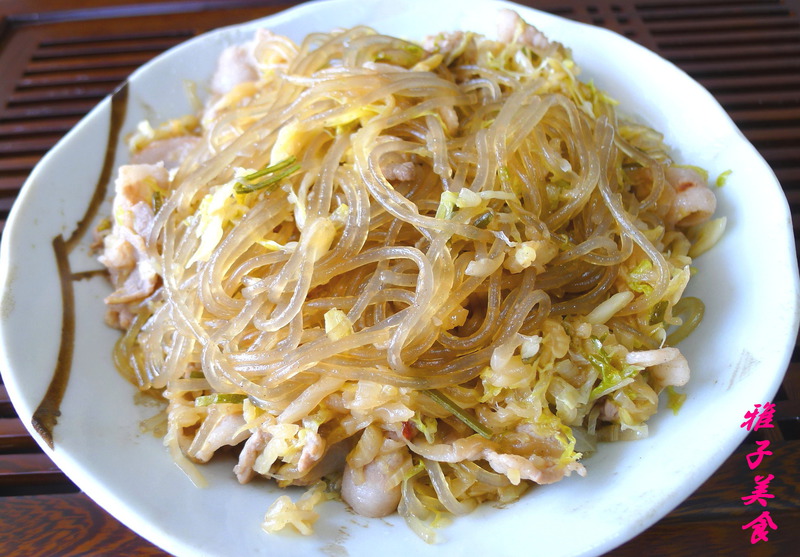 及以下步骤:入肉片炒至变色。 放入白菜翻炒片刻,放入米醋再翻炒片刻。 入粉条和淡色酱油和白胡椒粉炒均即可出锅。 横切丝。 攥净水分待用。 姜切丝,肉切片待用。 热锅热油把姜爆出香味。 入肉片炒至变色。 放入白菜翻炒片刻,放入米醋再翻炒片刻。 入粉条和淡色酱油和白胡椒粉炒均即可出锅。