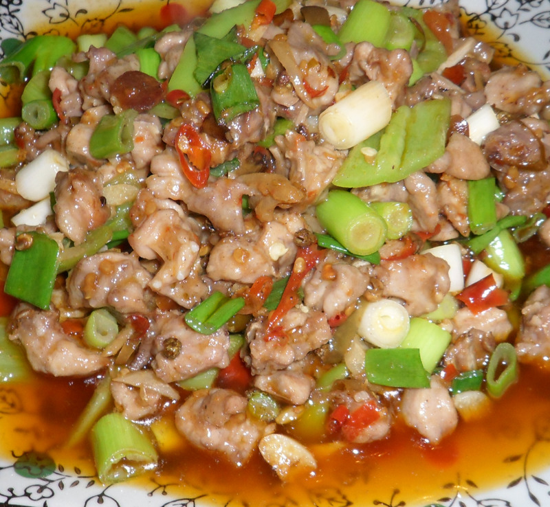 1、1、把葱切段,青椒切成菱形。