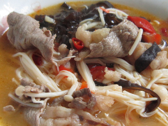 及以下步骤:放干辣椒略炒。 放水和黑木耳丝、浓汤宝和泡椒。 放水和黑木耳丝、浓汤宝和泡椒。 水开后放入过水的金针菇。 水开后,中小火煮15~20分钟,下过水的肥牛肉再煮1分钟,根据口味加盐调味。 水开后,中小火煮15~20分钟,下过水的肥牛肉再煮1分钟,根据口味加盐调味。 放水和黑木耳丝、浓汤宝和泡椒。 水开后放入过水的金针菇。 水开后,中小火煮15~20分钟,下过水的肥牛肉再煮1分钟,根据口味加盐调味。 水开后,中小火煮15~20分钟,下过水的肥牛肉再煮1分钟,根据口味加盐调味。