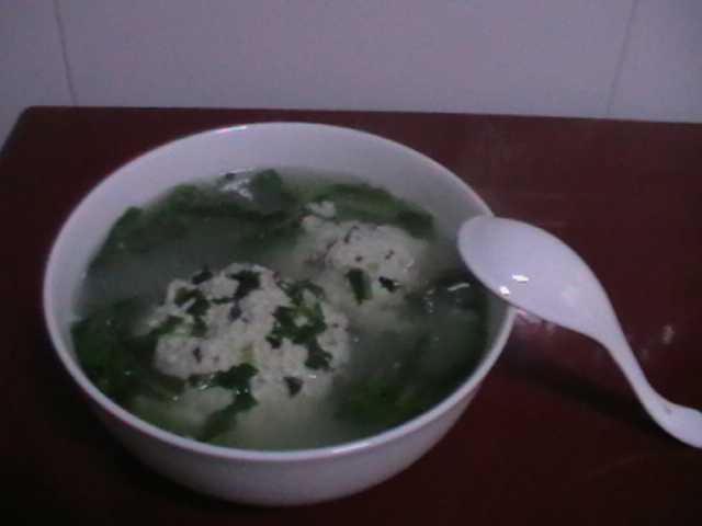 及以下步骤:豆腐过冷水攥干并捣成末,木耳切末,猪肉剁成馅,(放入盐.胡椒粉) 豆腐冷水下锅,水开以后煮5分钟,(去豆腥味) 豆腐过冷水攥干并捣成末,木耳切末,猪肉剁成馅,(放入盐.胡椒粉) 豆腐冷水下锅,水开以后煮5分钟,(去豆腥味) 豆腐过冷水攥干并捣成末,木耳切末,猪肉剁成馅,(放入盐.胡椒粉) 豆腐冷水下锅,水开以后煮5分钟,(去豆腥味) 豆腐过冷水攥干并捣成末,木耳切末,猪肉剁成馅,(放入盐.胡椒粉) 香菜和油麦菜洗净控水,香菜切末,油麦菜切段。葱姜切末。 把豆腐.木耳.肉馅.盐和胡椒粉.葱姜末混合,并加入鸡蛋.淀粉搅拌均匀。 点火,锅里水温达到50—60度,手蘸冷水,把材料分成六分滚圆依次下入锅内,煮15分钟,下入油麦菜煮一小会儿,关火,撒上香菜末。