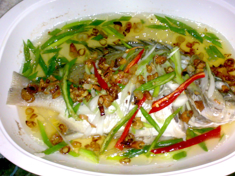 3.泼葱头油也很关键..蒸鱼拿出就要开始弄葱头油..在鱼还热时就得浇葱头油..油下去时能听到滋的一声..从鱼头浇到鱼尾..这样鱼的味道才香才鲜.