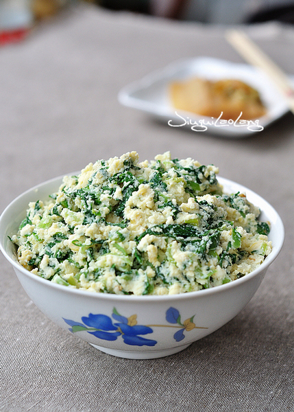 菜豆腐,顾名思义就是用豆子和蔬菜做成的一种食品。菜豆腐是一种家常的菜,既可当菜还又可当饭。 很久没有吃过菜豆腐了,心中也快把它的味道淡忘了,但骨子里对它的牵挂总还是有的。 记忆里关于菜豆腐最深的印象是在老家农村上学的时候吃过的菜豆腐,那时候还有生产队,平时的吃食无非是地瓜玉米类做成的煎饼和窝头。 那时候我最大的愿望就是能随心所欲的吃上几个白面大饽饽,但仅限于愿望。每天不到放学肚子就饿的咕噜噜的叫,放学后跑到家的第一件事就是掀锅盖,看看做的什么吃食,其实无非就是煎饼窝头和咸菜。 但有一天家里做了一顿菜豆腐,就是用野菜和豆面和在一起煮的稠稠的,盛到碗里就着咸菜吃。吃到嘴里沙沙的散散的,哎呀,那个香啊。很多年过去了,现在想起来也觉着那时的那一顿菜豆腐为啥那么香啊,唉,那时候生活条件差啊,能见到叶菜和豆面就够奢侈的了。 现在再按照当时的做法做那种菜豆腐的话,我估计也吃不下去,缺盐少油的谁会吃呢。但,那时候这种菜豆腐也是不会经常有的。有时候儿子挑食我就说爸爸小时候怎样怎样,但细想起来时代不同了,那时候父母也是想给我们多做点有营养的饭菜,可那时哪有啊。 昨天突然就想吃菜豆腐了,不是嘴馋,主要是想不起它的味道心中像少了些什么。说实话我没有做过菜豆腐,以前都是父母做了我来吃,但父母年纪大了该是我来做给他们吃了。那就自己做次试试,勾引下那记忆里的味道,一个家的味道。 家里以前的做法是把黄豆泡上一天后去皮,用刀把豆粒剁成细末,这样做出的菜豆腐吃起来是沙沙的口感,特香。但我有料理机啊,那就偷回懒用料理机处理豆粒好了。油嘛还是按照家传用大油,没有大油就用肥肉自己炼油。