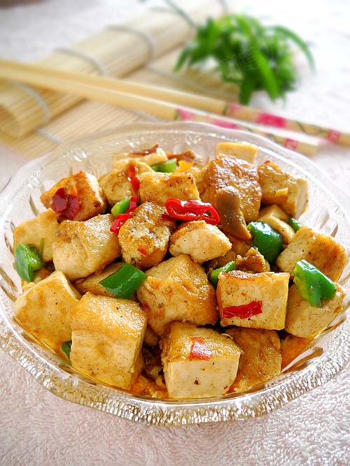豆制品营养丰富,我家餐桌上每天都能见到的家常菜。 豆腐先用油稍稍煎一下,再加入调味料烧制,有型有味,鲜咸香辣下饭······