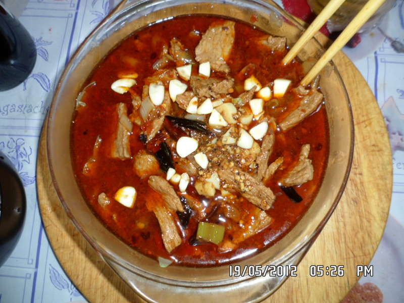 哈哈,做好了饭,在发帖子,身边坐了两头小猪在狂吃,吃的不亦乐乎,还问我为啥不吃,因为减肥被。很辣,算是我做的最最成功的一次了,但是也一年多没做了。也不是麻烦,总是不记得。 先烫好卷心菜的叶子,然后爆香花椒,完了拨出来花椒,放辣椒,火锅底料,葱蒜爆香,加水,当然之前牛肉加了红酒料酒和淀粉腌好,水滚后加入牛肉,之后。。。小火闷到牛肉熟透,牛肉是很难熟的。。。成功,很成功,看这俩吃的就知道是成功的。。。