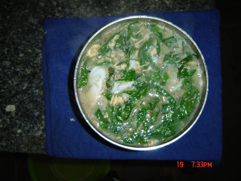 前面发了一个茄子蛋饼,再配上这个汤就没得说啦。狗脊叶吃了可是可以明目的哦。