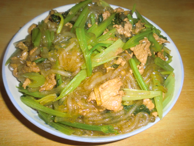 芹菜(三棵) / 瘦肉(适量) / 土豆粉(适量)