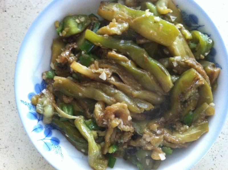 及以下步骤:最后放盐,然后上盘 好吃不好看~ 茄子切断,泡水,准备 锅中下油 放入茄子,煎至茄子全部软榻,这样才入味~如果追求美感的鞋童可以按自己要求做哈~ 加入大蒜 加入青椒 快好的时候加入生抽 最后放盐,然后上盘 好吃不好看~
