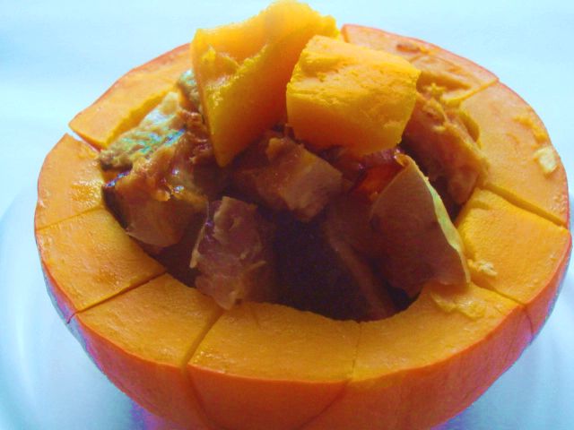 4、腊鱼丁盛入南瓜盅内