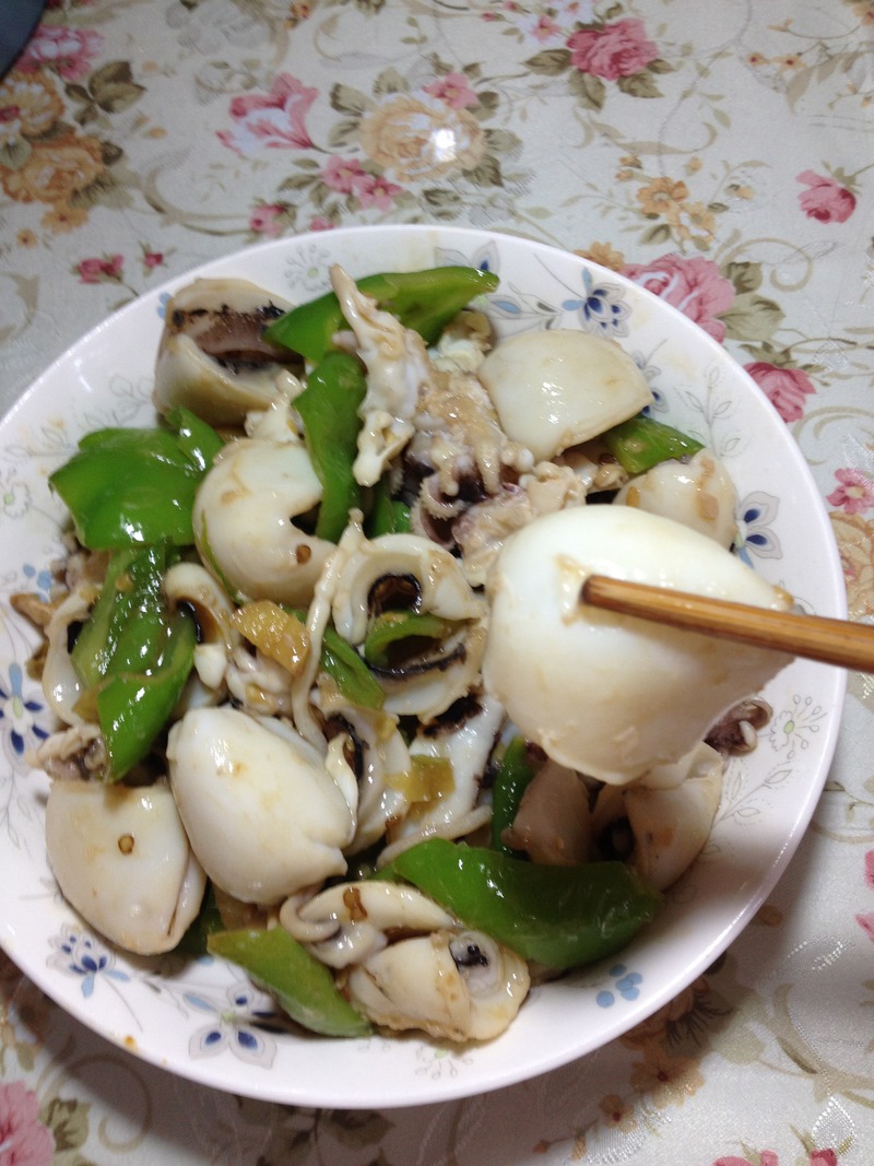及以下步骤:倒入墨鱼仔翻炒片刻,加生抽,盐调味后出锅 爆好的墨鱼仔,很嫩,看起来清淡,因为加了泡椒的原因,还是有点辣味的,很下饭 墨鱼仔洗净 去掉墨鱼仔白色体内两侧的肺叶,如图(很小,由于跟鱼肉一样也是白色的,很容易忽视,图上左侧的白色东西即是) 墨鱼仔放入开水内飞水,等须卷起后马上捞出,用冷水冲凉 青椒,杭椒,泡椒,生姜,大蒜头切片备用 锅内油烧热,下入生姜,蒜片爆香 下入青椒,杭椒,泡椒翻炒,至泡椒出辣味 倒入墨鱼仔翻炒片刻,加生抽,盐调味后出锅 爆好的墨鱼仔,很嫩,看起来清淡,因为加了泡椒的原因,还是有点辣味的,很下饭